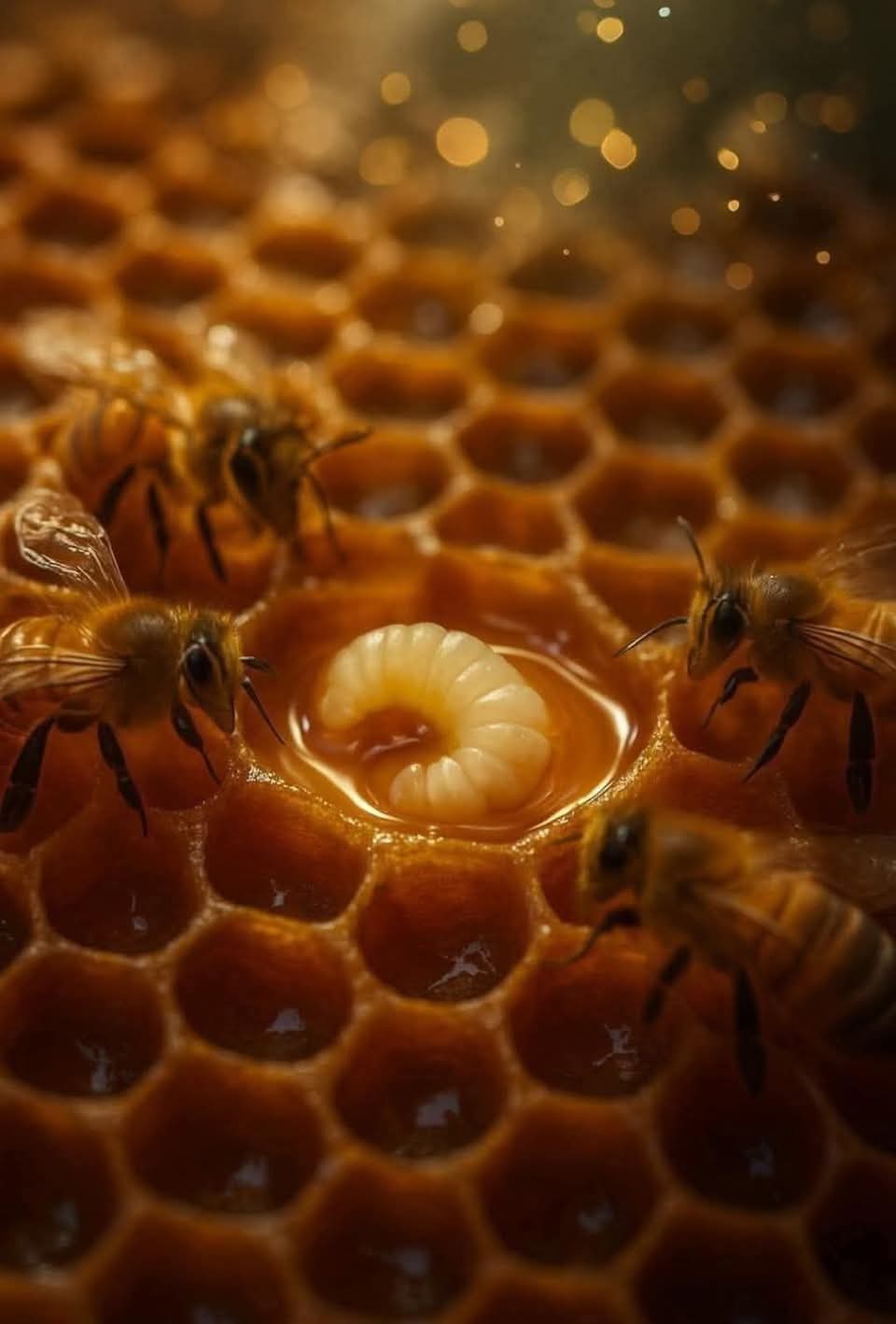 Son elegidas para recibir un alimento especial: jalea real. Una sustancia rara, producida por abejas sanas, rica en proteínas, vitaminas y compuestos bioactivos. Este es un alimento real en el sentido más puro de la palabra.