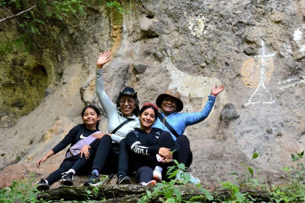 Visitaron su encantador pequeño acueducto y una de las tres laderas con pinturas rupestres en el famoso “Paraje de la Zorra”. Allí fue posible admirar siluetas de fauna y figuras que representan a deidades como Tláloc, legado de antiguos asentamientos. 🐾⛰️