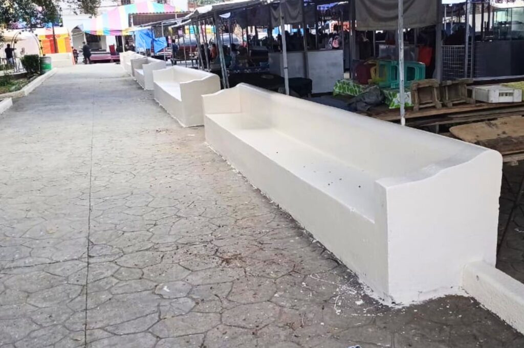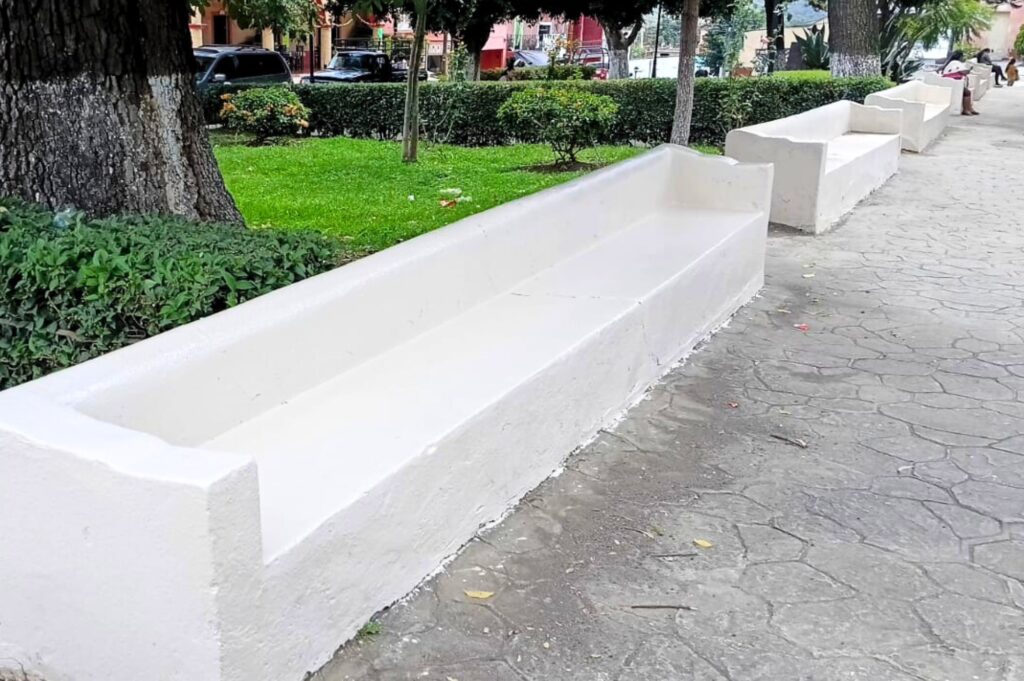 Tochimilco rehabilitó las bancas del zócalo en preparación para las Fiestas Patrias