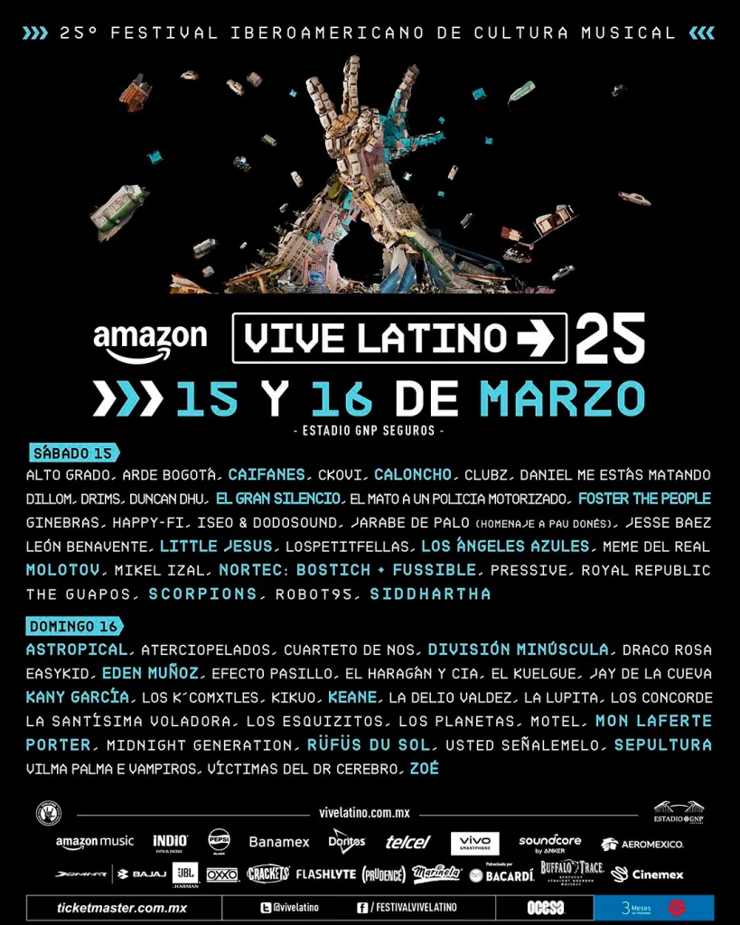El Vive Latino 2026 se celebrará los días 14 y 15 de marzo de 2026 en el Estadio GNP Seguros de la Ciudad de México, con un cartel que combina leyendas del rock y nuevas voces de la escena contemporánea.