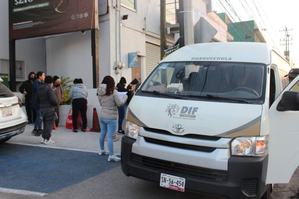 Unidad del DIF Huaquechula trasladando a mujeres a jornada gratuita de mastografías en Puebla.
