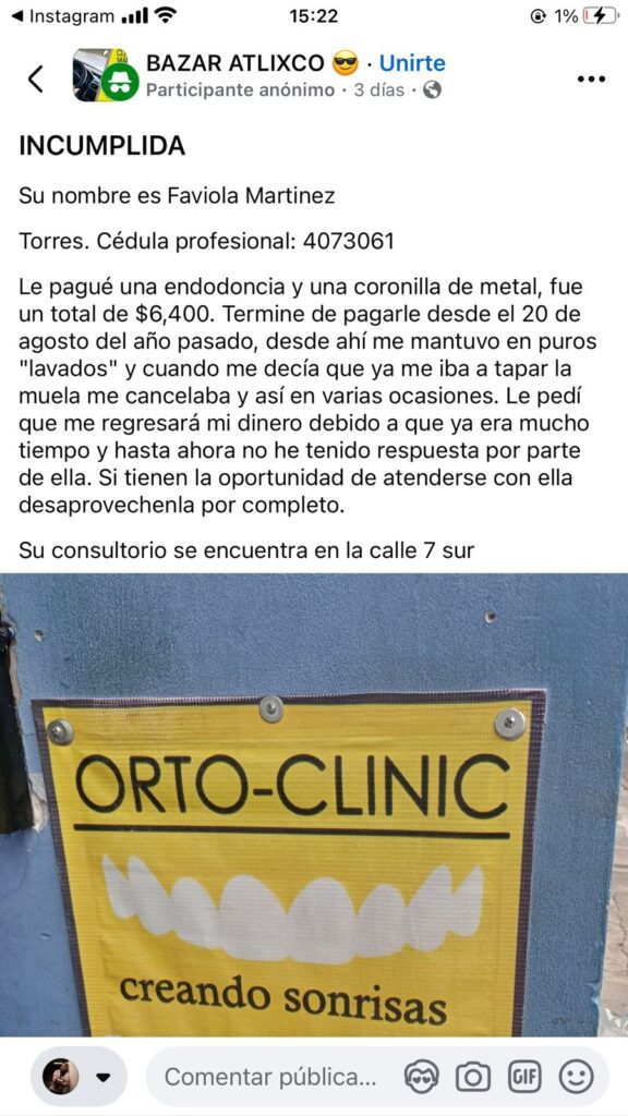 Denuncias en Atlixco por presunto incumplimiento en servicios dentales generan debate en redes