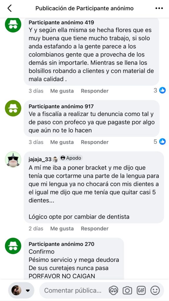 De acuerdo con el testimonio principal, un usuario reportó haber pagado más de seis mil pesos por un tratamiento dental que incluía endodoncia y colocación de una coronilla, el cual no habría sido concluido pese a múltiples citas y promesas de atención desde agosto de 2025.