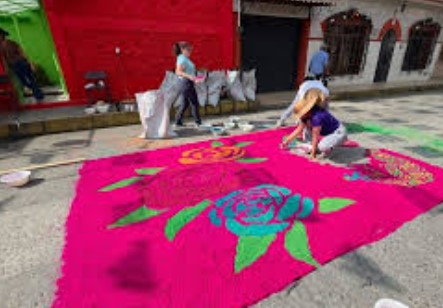 Las alfombras de aserrín forman parte del patrimonio cultural y religioso de México, representando escenas alusivas a la Semana Santa y reforzando la identidad comunitaria.