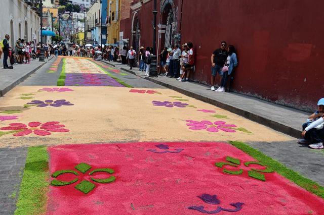 Atlixco revive tradición de alfombras de aserrín en Semana Santa 2026