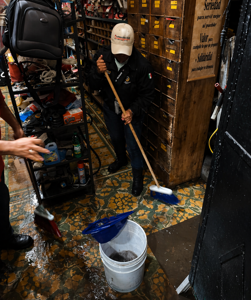 Durante los recorridos, el personal revisa puntos considerados de riesgo, como vialidades con encharcamientos, zonas de escurrimiento y áreas con posibles afectaciones a la infraestructura urbana.